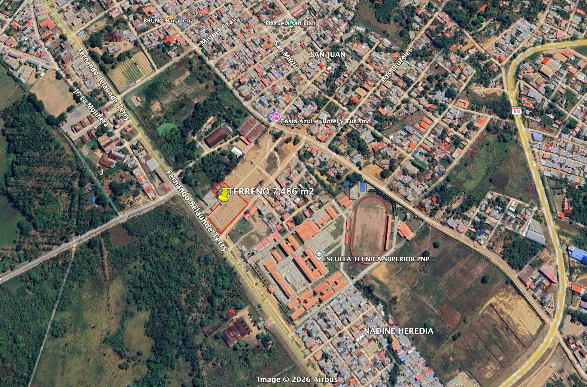 El Terreno se encuentra ubicado en el km 1.5 de la carretera Fernando Belaunde Terry, en zona de plena expansion urbana. Se encuentra al costado de la nueva Escuela de Policia. Su ubicacion es estrategica: Punto de Interseccion de principales vias de entrada y salida de la ciudad